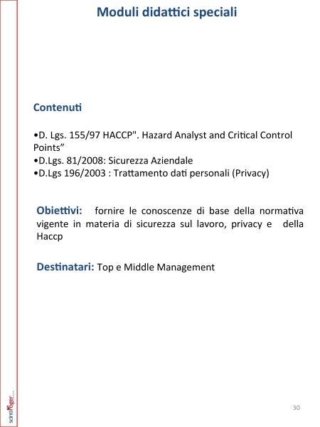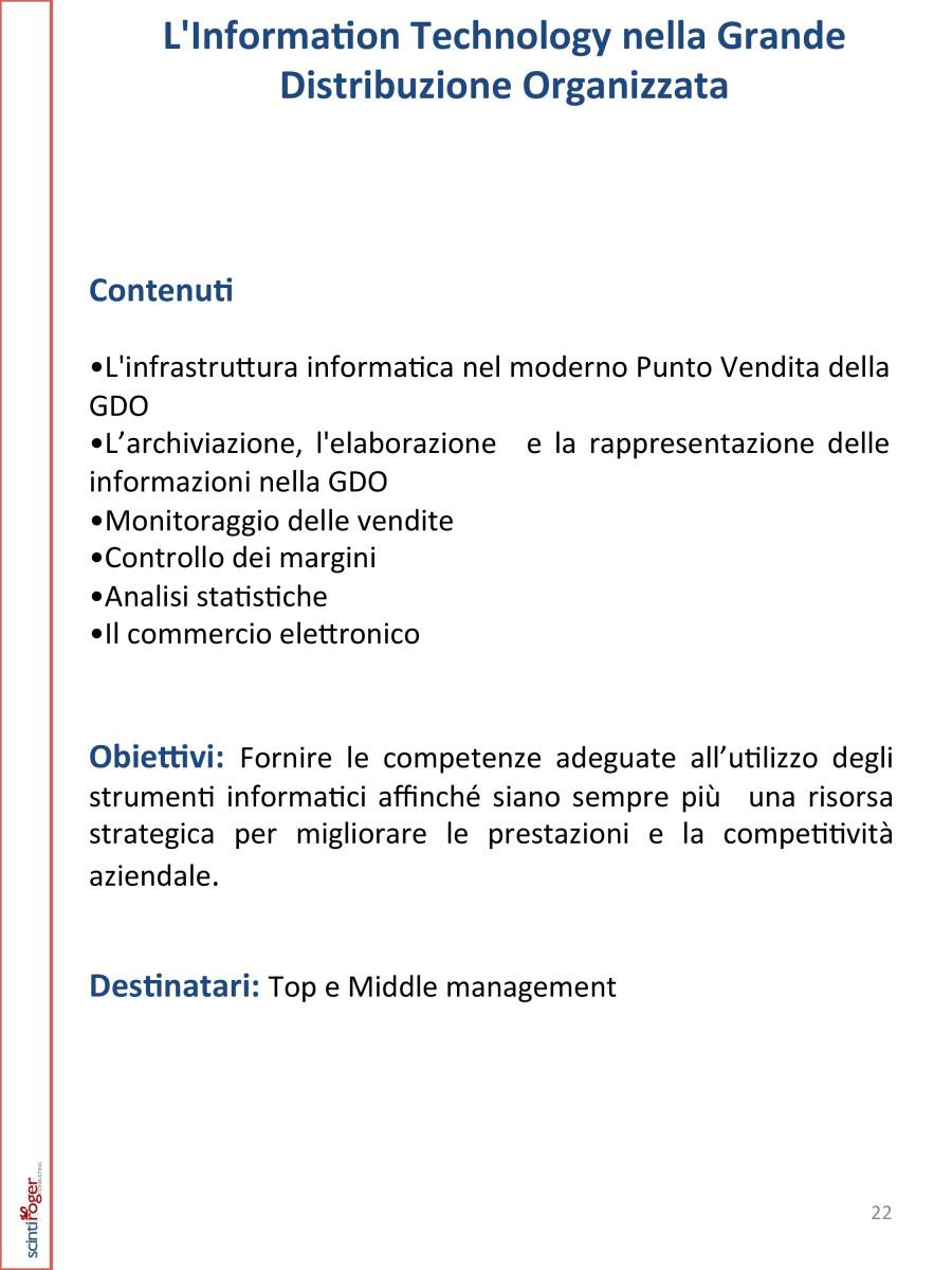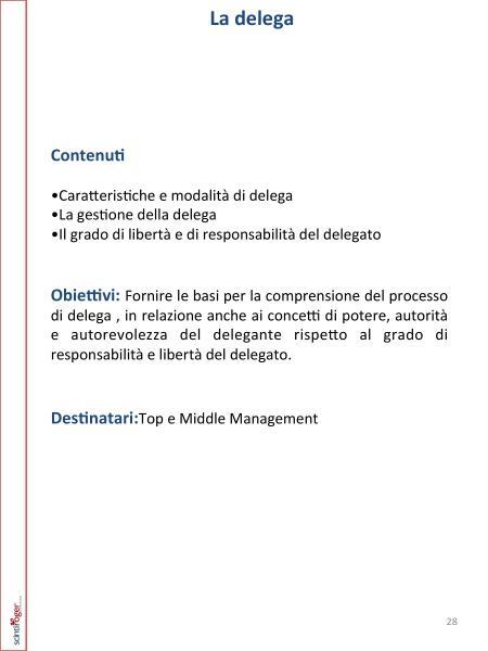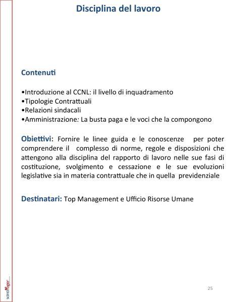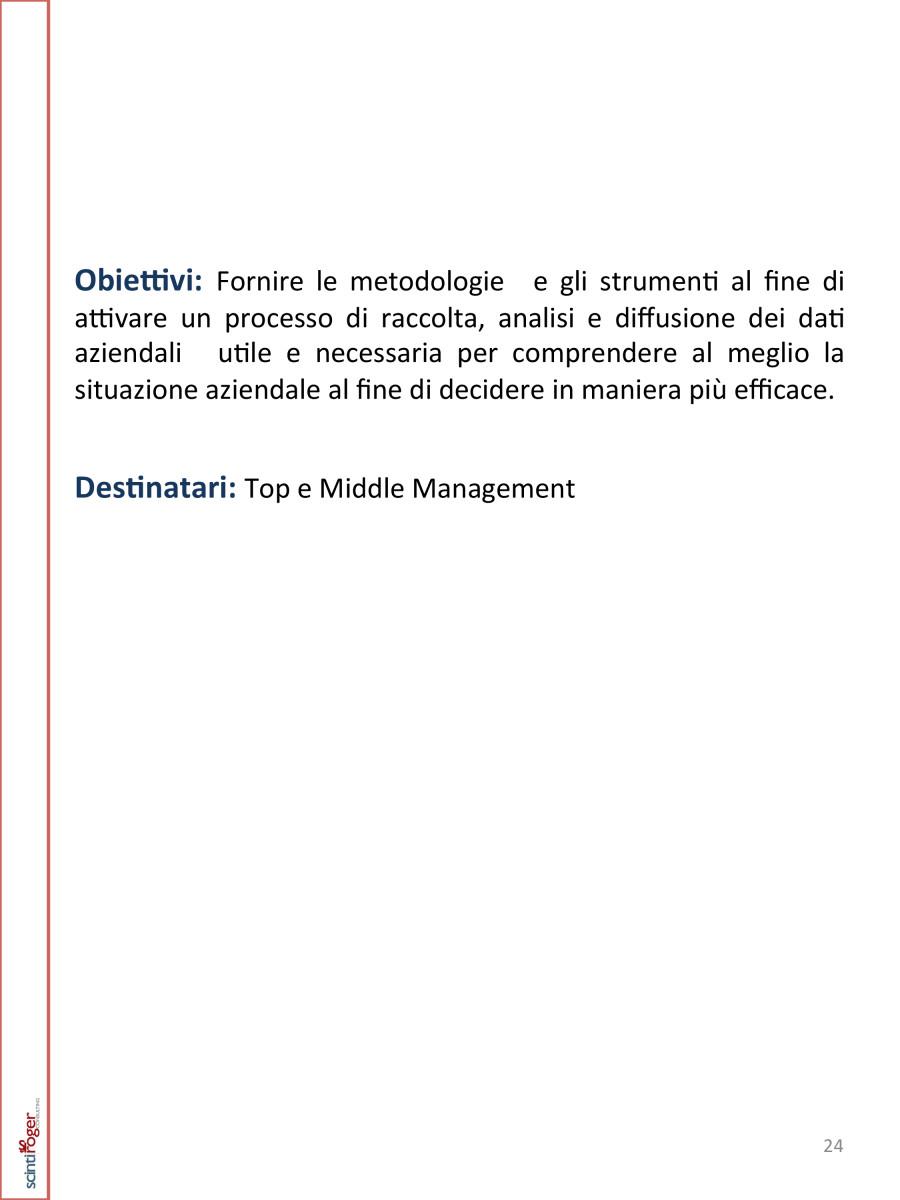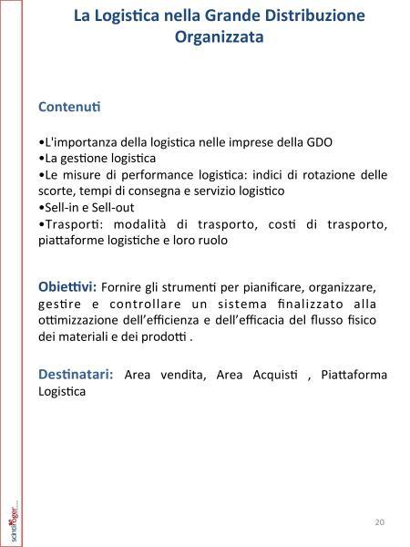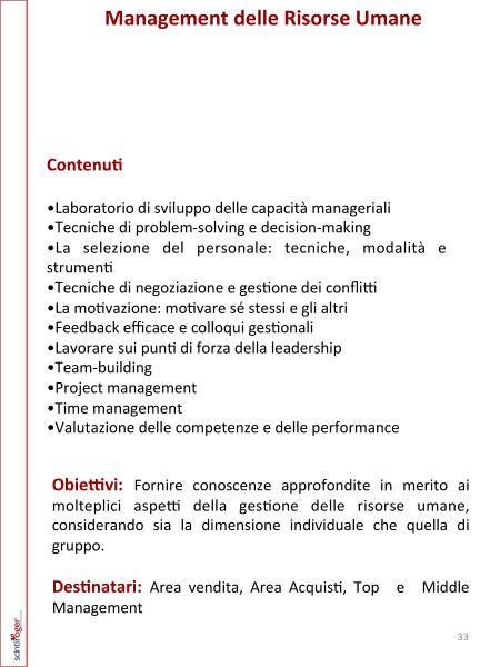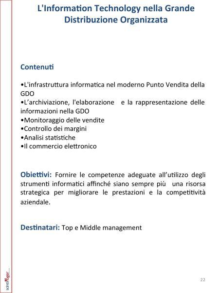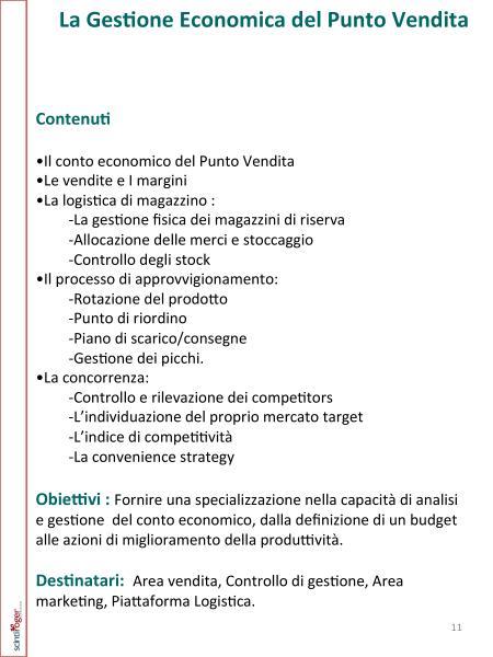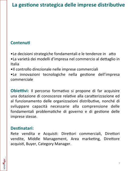 La forte competizione che caratterizza l’attuale scenario economico suggerisce una formazione specifica e specialistica a ogni livello aziendale che abiliti le diverse figure professionali a acquisire un approccio alle problematiche decisionali e operative di tipo interfunzionale e/o polifunzionale.