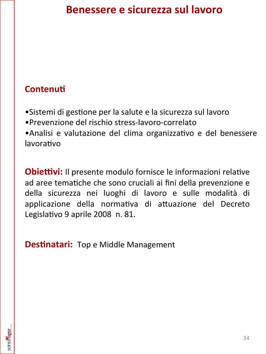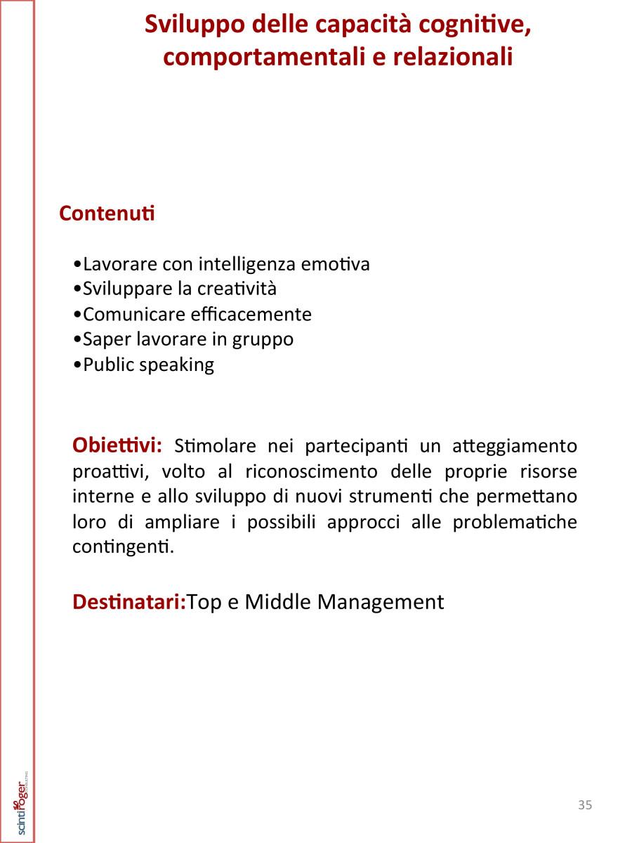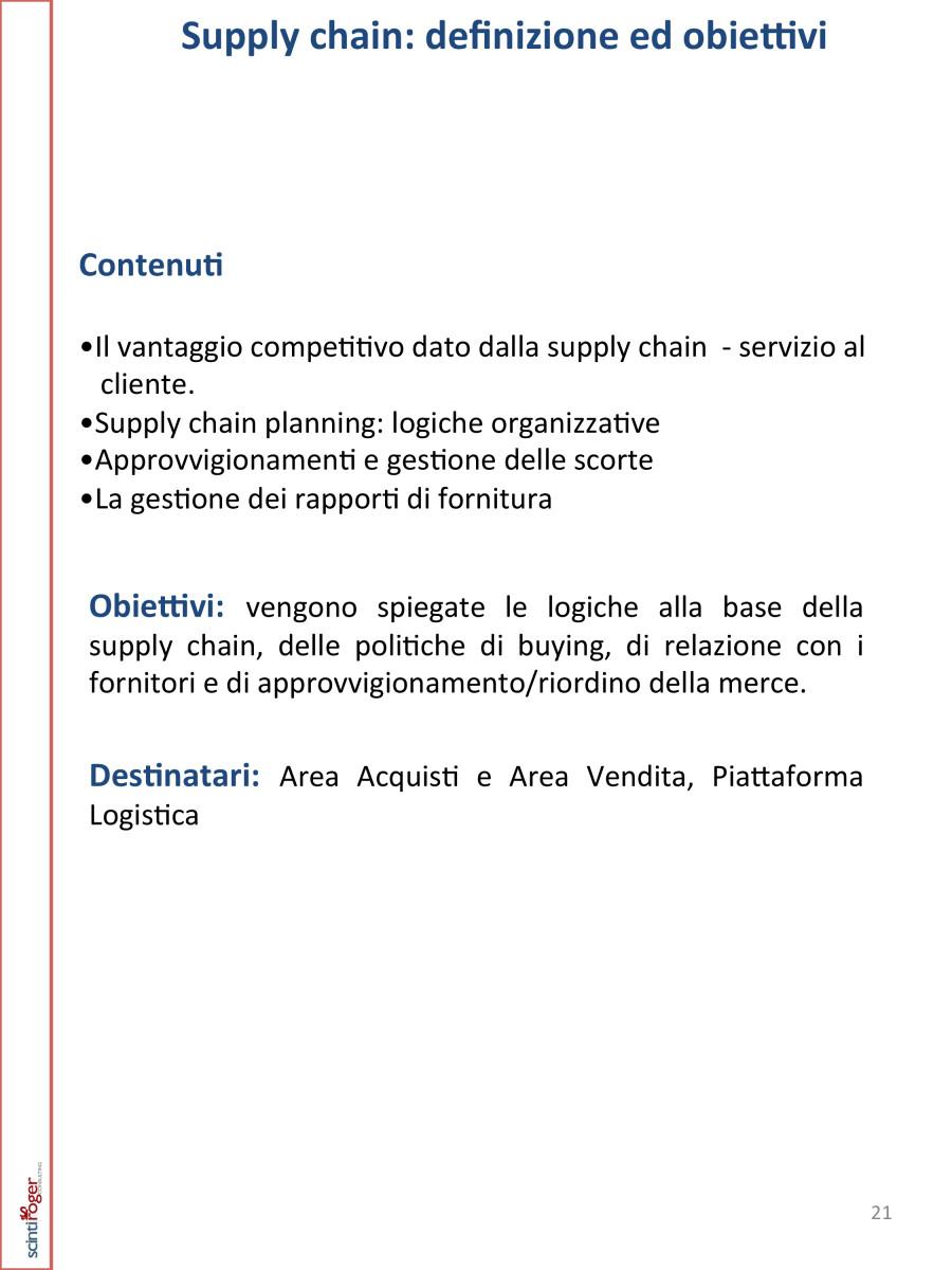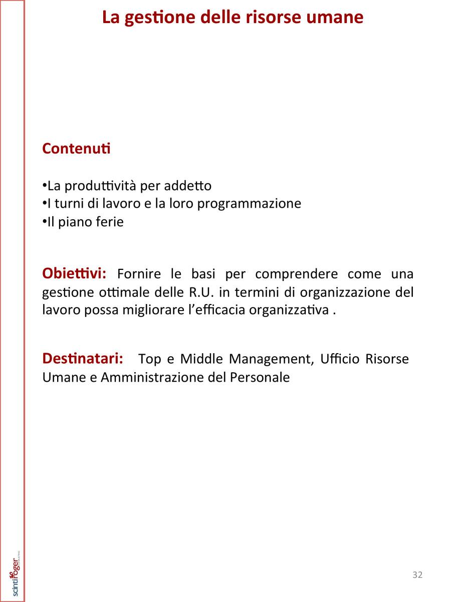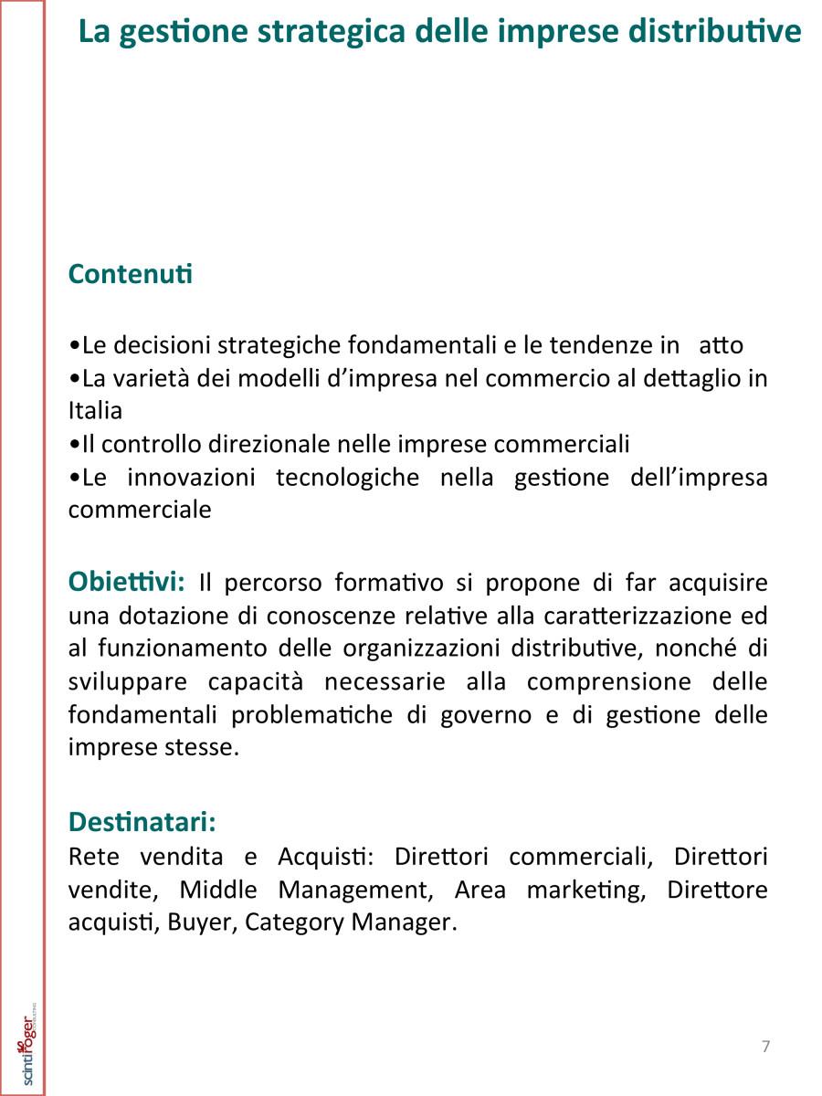 La forte competizione che caratterizza l’attuale scenario economico suggerisce una formazione specifica e specialistica a ogni livello aziendale che abiliti le diverse figure professionali a acquisire un approccio alle problematiche decisionali e operative di tipo interfunzionale e/o polifunzionale.